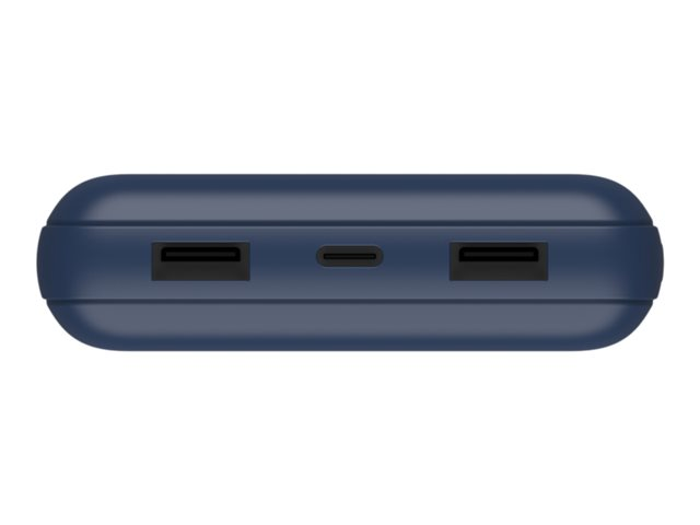 20000 mAh - 15 Watt - 3 connecteurs de sortie (USB, 24 pin USB-C) - sur le câble : USB-C - bleu