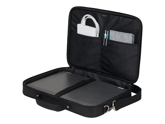 Description du produit DICOTA Multi Wireless Mouse Kit - sacoche pour ordinateur portable Type de produit Sacoche pour ordinateur portable Couleur Noir Matériau du produit Polyester 300D Dimensions (LxPxH) 41 cm x 6.5 cm x 29.5 cm Poids 690 g Compatibilité ordinateur portable 15.6" Caractéristiques Poches intérieures, compartiment pour ordinateur portable verrouillable, poche avant, sangles de chariot arrière Sangle de transport Poignée sur le dessus, bandoulière amovible rembourrée Garantie du fabricant Garantie de 2 ans Fourni avec Souris optique sans fil -