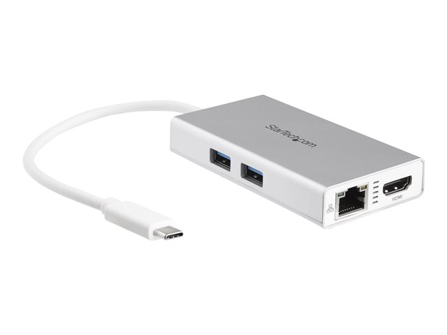 StarTech.com Adaptateur multiport USB-C, station d'accueil de voyage USB-C avec HDMI 4K, pass-through d'alimentation 60 W, GbE, hub USB-A 3.0 2 points, blanc