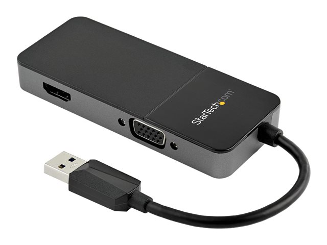 StarTech.com USB 3.0 to HDMI and VGA Adapter, 4K/1080p USB Type-A Dual Monitor Multiport Adapter Converter, External Video Graphics Card for Multiple Screens, Multi Display USB Adapter