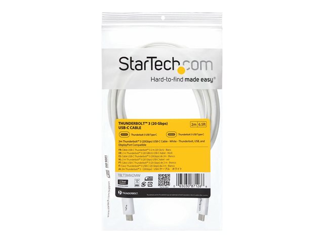 Câble Thunderbolt - 24 pin USB-C (M) pour 24 pin USB-C (M) - USB 3.1 Gen 2 / Thunderbolt 3 / DisplayPort 1.2 - 2 m - support 4K - blanc - pour P/N: CDP2HDUACP, CDP2HDUACPW