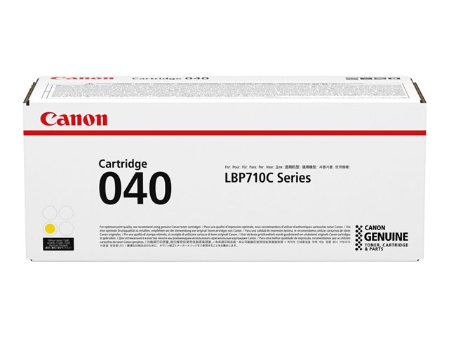 Description du produit Canon 040 - jaune - original - cartouche de toner Type de Produit Cartouche de toner Technologie d'impression Laser Couleur d'impression Jaune Rendement Jusqu'à 5400 pages Compatible avec imageCLASS LBP712Cdn -