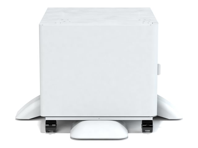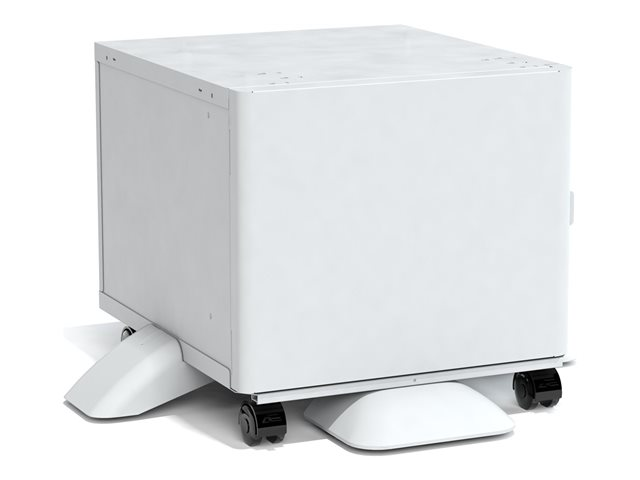 Ce support d'imprimante a des roues et des pieds qui s'étendent pour le support et fournit un espace de stockage pour les cartouches de toner, le papier et d'autres fournitures.