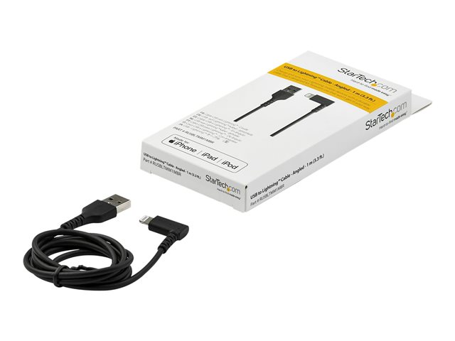 StarTech.com Câble USB-A vers Lightning Noir Robuste 1m Coudé à 90°