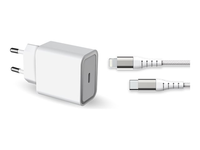 avec connecteur lightning et câble USB-C - 20 Watt - PD (24 pin USB-C) - blanc