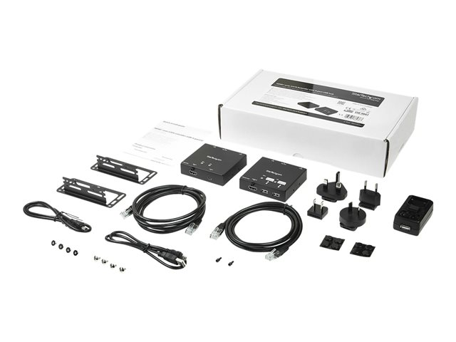 Ce kit d'extendeurs HDMI vous permet de transmettre votre source vidéo HD 1080p vers votre écran HDMI distant à une distance pouvant aller jusqu'à 50 m au moyen de câbles CAT6 blindés. Cet extendeur comporte un hub USB 2.0 à 4 ports intégré, qui vous permet aussi de connecter quatre périphériques USB distants sur le site de votre écran.