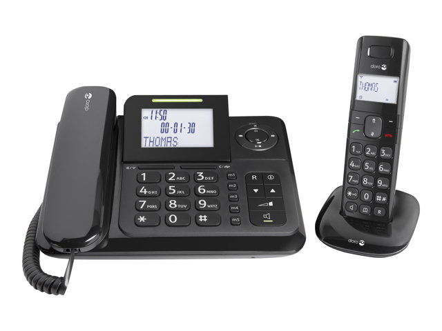 Le téléphone Doro Comfort 4005 est idéal si vous souhaitez à la fois posséder un téléphone filaire et un sans fil. Assortis, ils forment un ensemble idéal. Étant donné que l'unité de base DECT est intégrée dans le téléphone filaire, cette solution offre un plus petit socle chargeur pour votre combiné sans fil que ceux généralement proposés. Les deux combinés sont confortables à tenir et offrent un bon son clair grâce à la qualité TrueSound de Doro. Le téléphone filaire dispose d'un bouton " boost " pour toute personne souhaitant augmenter le son. Parmi les autres fonctionnalités, il dispose d'un afficheur rétro-éclairé blanc facile à lire, un répondeur, un mains-libres, une fonction interphonie, une fonction de transfert d'appels entre les combinés et bien plus encore.